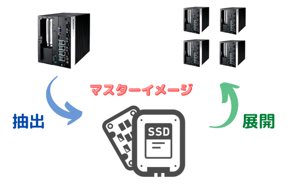 産業用PCの量産化に伴うマスターイメージの作成や、展開準備(Sysprep)等を、適宜サポート致します。